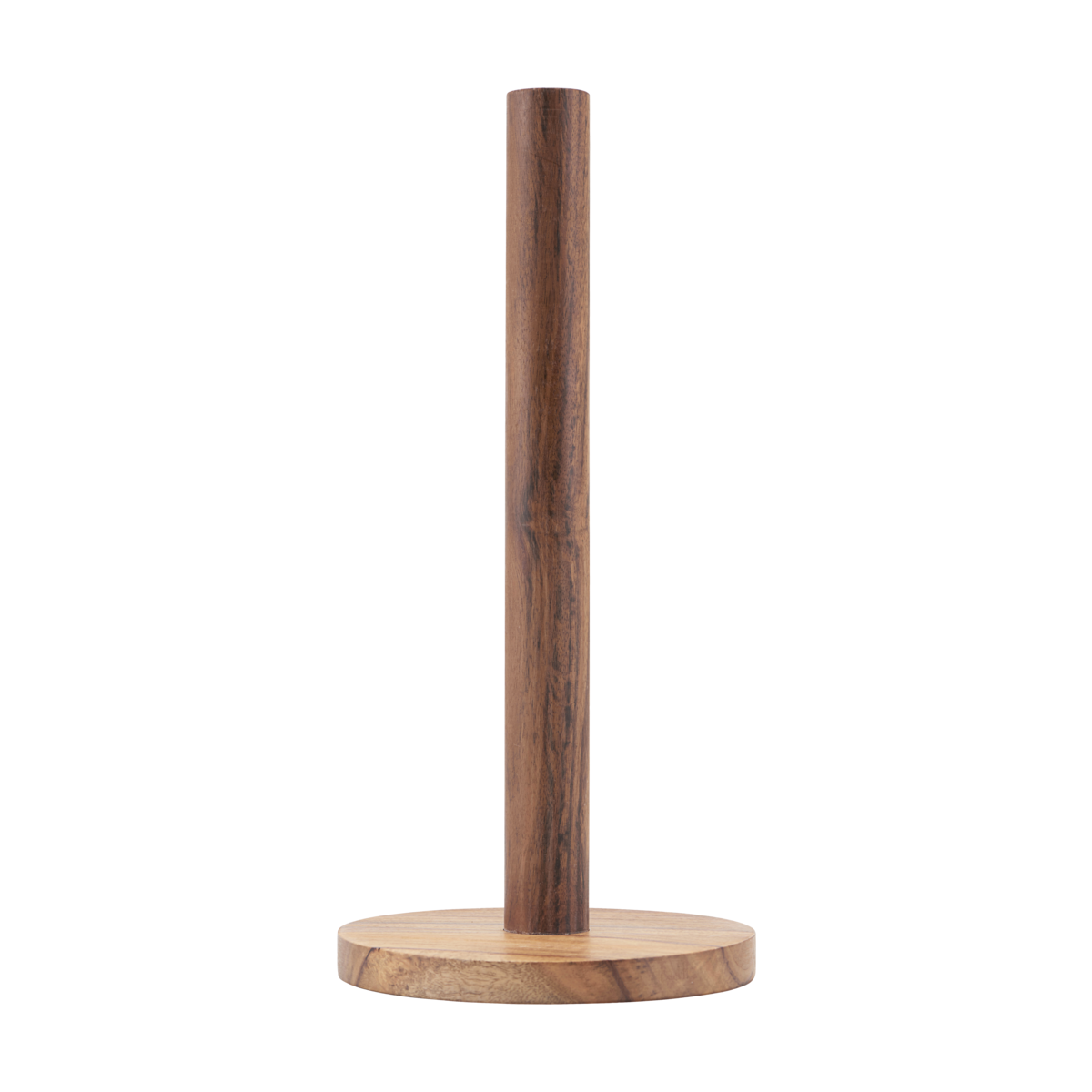 A nice and functional holder for your kitchen paper towel roll, made of acacia tree with a natural look. 12" in height and fits perfectly to an ordinary kitchen roll.